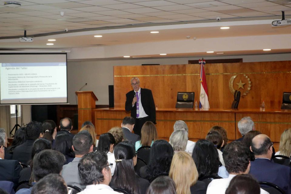 Directores y jefes de diversas dependencias del Poder Judicial participaron este jueves en un taller de concienciación en ciberseguridad, desarrollado en el Salón Auditorio “Dra. Serafina Dávalos” del Palacio de Justicia de Asunción. La actividad se realizó en el marco de la campaña institucional aprobada por el Consejo de Superintendencia, con el objetivo de fortalecer las buenas prácticas en el uso de herramientas digitales y proteger la información institucional.
