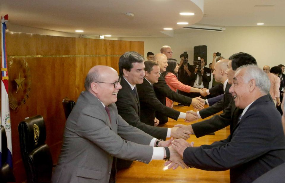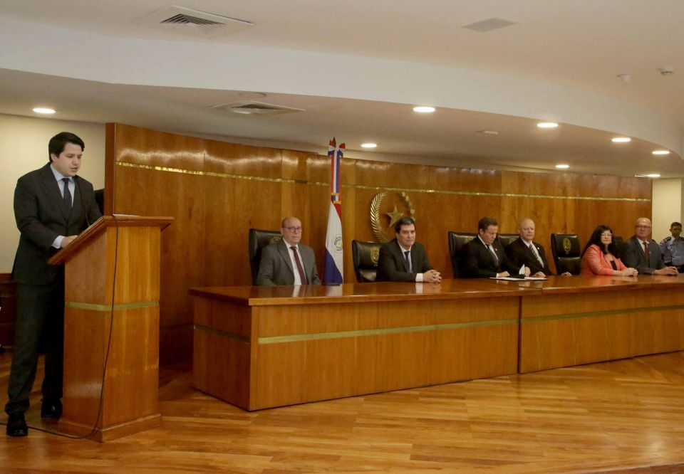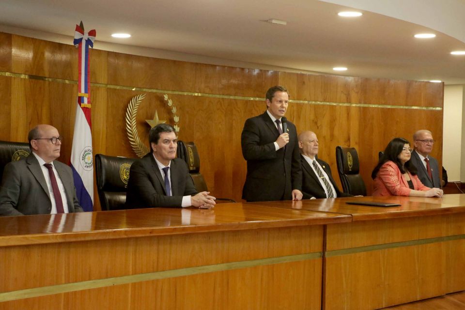 En el Salón Auditorio “Dra. Serafina Dávalos” del Palacio de Justicia de Asunción, este lunes 23 de marzo se llevó a cabo el acto de juramento de rigor a 13 magistrados y 4 agentes fiscales. La ceremonia fue encabezada por el presidente de la Corte Suprema de Justicia, doctor Alberto Martínez Simón; el vicepresidente primero, doctor Luis María Benítez Riera; el vicepresidente segundo, doctor Gustavo Santander Dans; y los ministros doctores María Carolina Llanes Ocampos y César Diesel Junghanns. Participó también el fiscal general, doctor Emiliano Rolón Fernández.