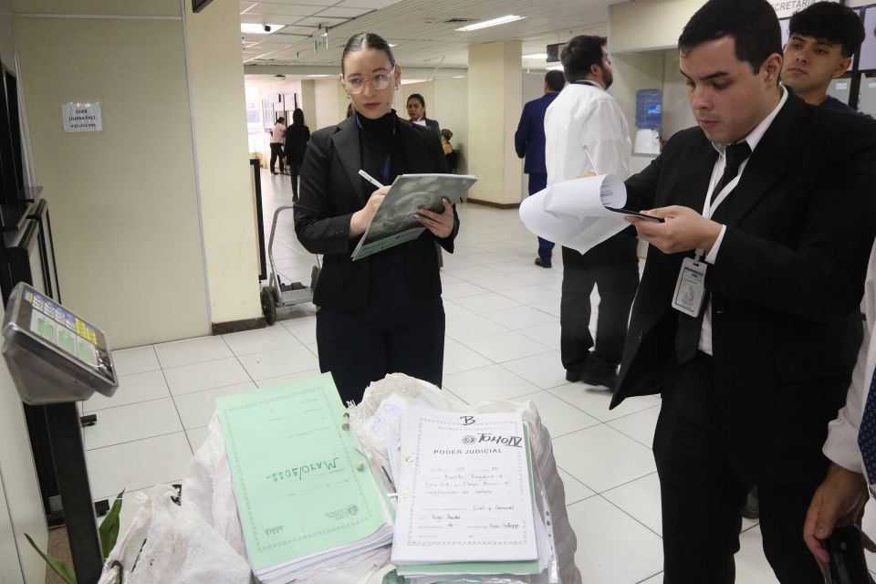 En el marco de las adecuaciones y mejoras en los Juzgados de Primera Instancia en lo Civil y Comercial de la Capital, dispuestas por el Consejo de Superintendencia de la Corte Suprema de Justicia, y del proceso de depuración de documentos en dichos juzgados, en concordancia con la política de sostenibilidad ambiental, representantes de la Dirección de Derecho Ambiental, encabezados por el ingeniero Mauricio Patiño, realizaron este jueves 26 de marzo un recorrido de verificación, retiro y reciclaje de materiales en los despachos ubicados en el tercer piso de la torre sur del Palacio de Justicia. Estas acciones tienen como finalidad optimizar recursos, reducir el impacto ambiental y promover la reutilización de papel y otros materiales reciclables.