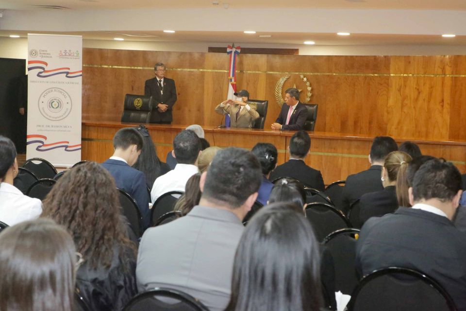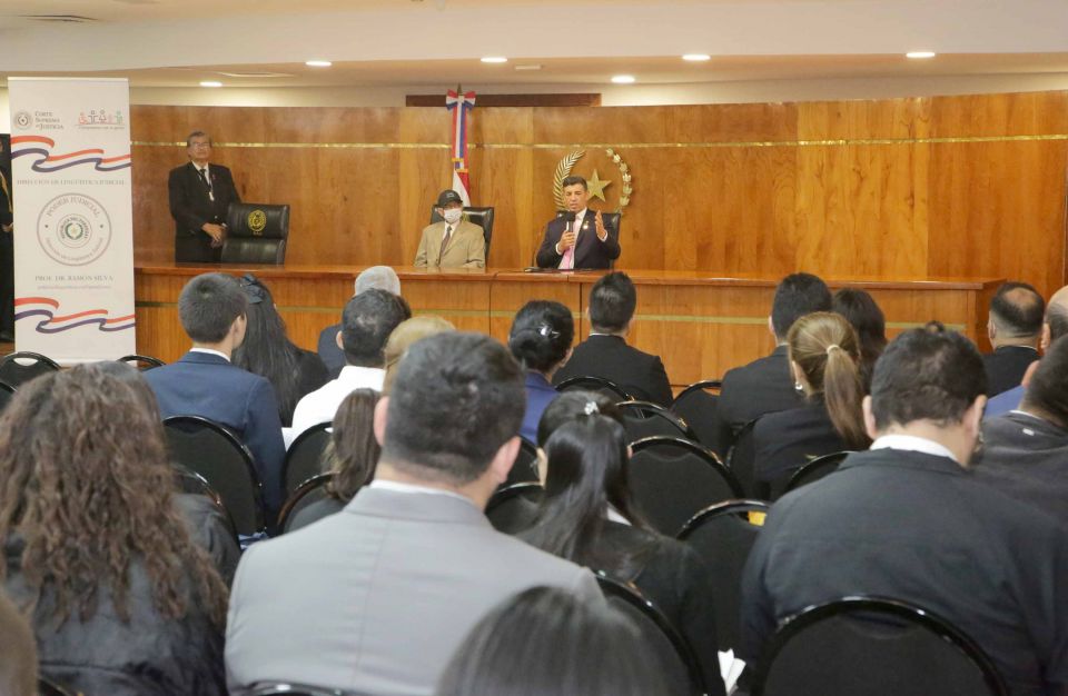 El profesor doctor Víctor Ríos Ojeda, ministro de la Corte Suprema de Justicia y enlace de la Dirección de Lingüística Judicial (DLJ), participó este miércoles 8 de abril en la apertura de la segunda edición del Diplomado en Guaraní Jurídico con énfasis en Comunicación Social. La actividad estuvo a cargo del profesor Ramón Silva y tuvo lugar en el Salón Auditorio “Dra. Serafina Dávalos” del Palacio de Justicia de Asunción. La iniciativa busca fortalecer el uso adecuado del guaraní en el ámbito jurídico, promover el respeto a los derechos lingüísticos de los hablantes y mejorar la calidad de la atención institucional. Está dirigida a funcionarios de la Circunscripción Judicial de la Capital.