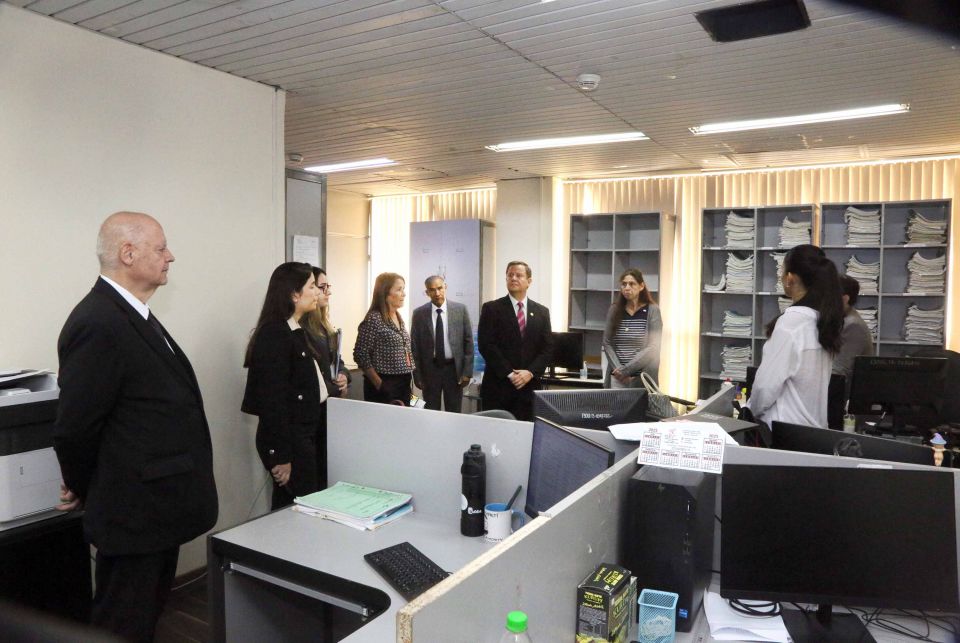 Durante la jornada, las autoridades realizaron un recorrido por juzgados ubicados en la planta baja y el tercer piso de la Torre Sur del Palacio de Justicia, donde verificaron aspectos relacionados con la atención al público, la organización interna y la infraestructura disponible.