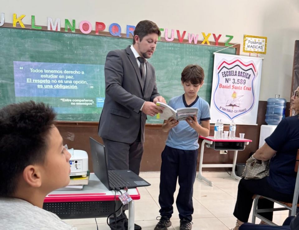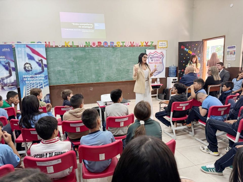 En el último día de actividades, realizado en la Escuela Básica N° 3589 Daniel Santa Cruz, la magistrada del fuero de la Niñez y la Adolescencia, doctora Milta Bobadilla, conversó con los niños sobre la importancia de conocer y respetar sus derechos, así como de cumplir con sus obligaciones. También se abordó el tema del bullying, analizando sus consecuencias y la importancia de promover el respeto y la convivencia pacífica en las escuelas.