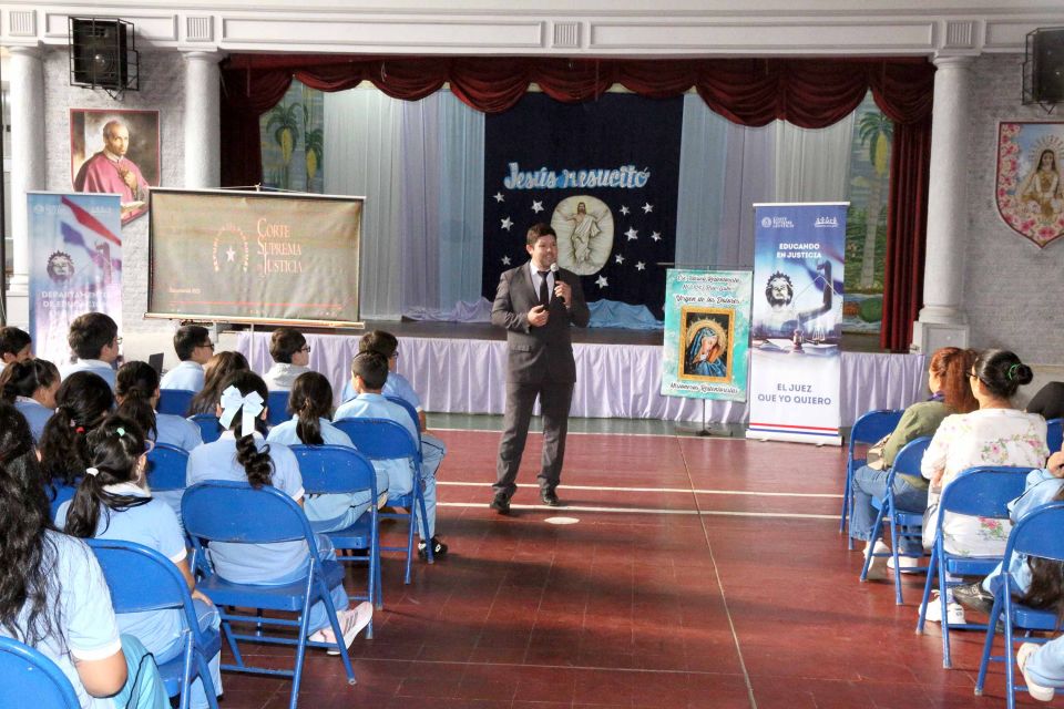 El Departamento de Educación en Justicia, dependiente de la Corte Suprema de Justicia, llevó a cabo, este martes 14 de abril de 2026, el módulo educativo “El juez que yo quiero”, en el marco del programa “Educando en Justicia”, en la Escuela Redentorista Virgen de los Dolores, donde participaron 250 alumnos de 4º al 9º grado.