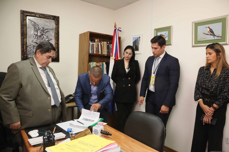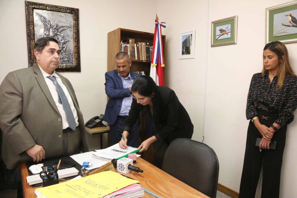 Acompañaron la entrega del documento el abogado Sergio Benítez, representante de la Senabico. Igualmente, participaron la magíster Melissa González, responsable de la Coordinación de Inscripción de Bienes Incautados y Comisados de la CSJ, y el actuario judicial del juzgado, abogado Cristian Marcelo Martin Ojeda.