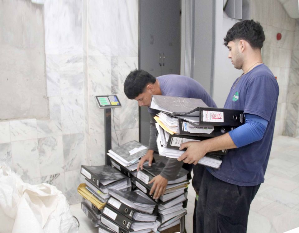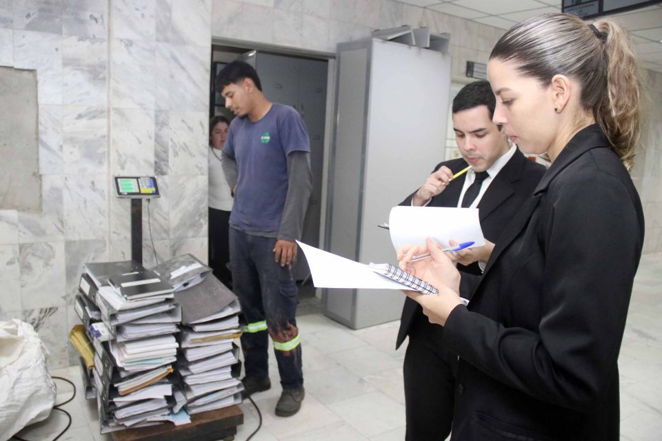 En el marco del proceso de depuración de documentos, adecuaciones y mejoras en los Juzgados Civil y Comercial de 1ª instancia y de la política de sostenibilidad ambiental, representantes de la Dirección de Derecho Ambiental realizaron un recorrido de verificación, retiro y reciclaje de materiales desde el decimosexto turno hasta el vigésimo turno. La iniciativa busca optimizar recursos, reducir el impacto ambiental y promover la reutilización de papel y otros materiales reciclables.