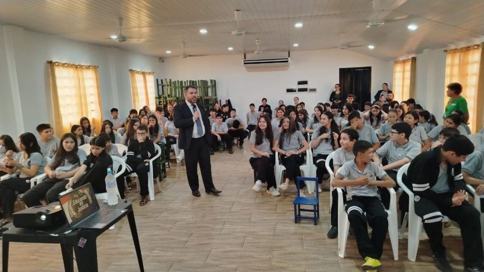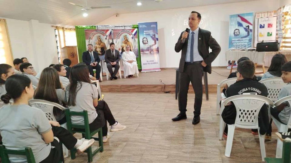 Con una masiva concurrencia de estudiantes, en el norte del país se desarrolló la charla del programa Educando en Justicia. La jornada educativa benefició a dos localidades: la compañía Picada Fernández y el barrio La Asunción de la ciudad de San Pedro del Ycuamandyjú, dirigida a niños, niñas y adolescentes de las instituciones educativas Escuela Básica N° 945 Don Juan Ramírez y el Colegio Nuestra Señora del Carmen.