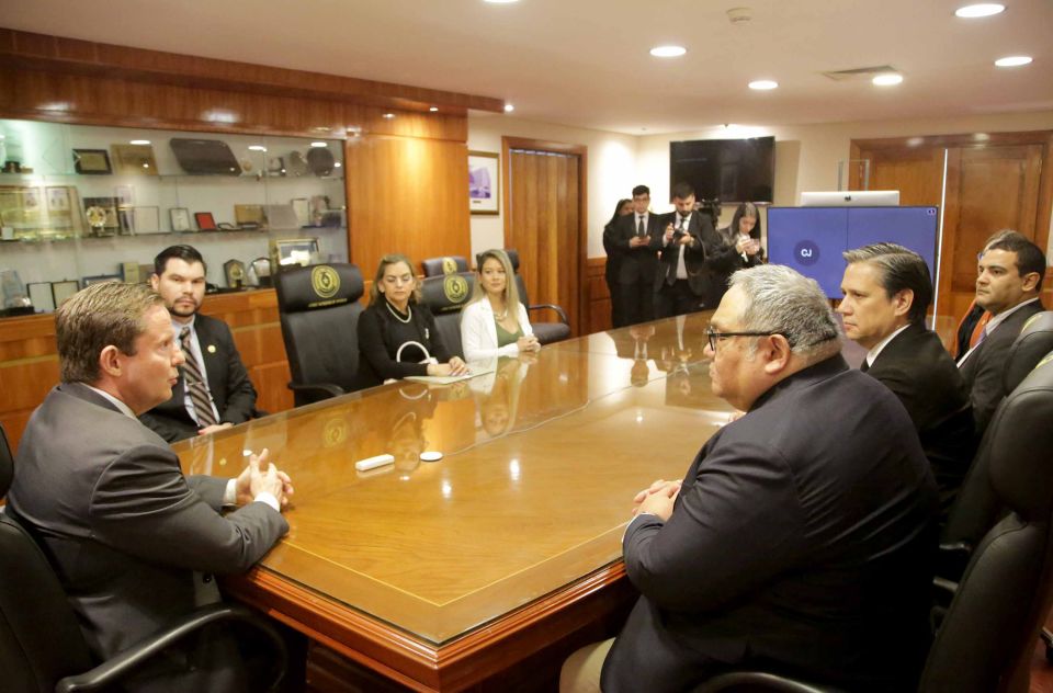 Del acto participaron, además, representantes de dicha casa de estudios: Decano de la FCJYS Dr. Diego Renna Casco, Dra. Patricia Sequeira Coordinadora de Carrera de la FCJYS, Dra. Nury Benítez, Dra. María José Orue, Dr. Juan Melgarejo, y el Sub Coordinador de la FCJyS Jorge Ledezma.