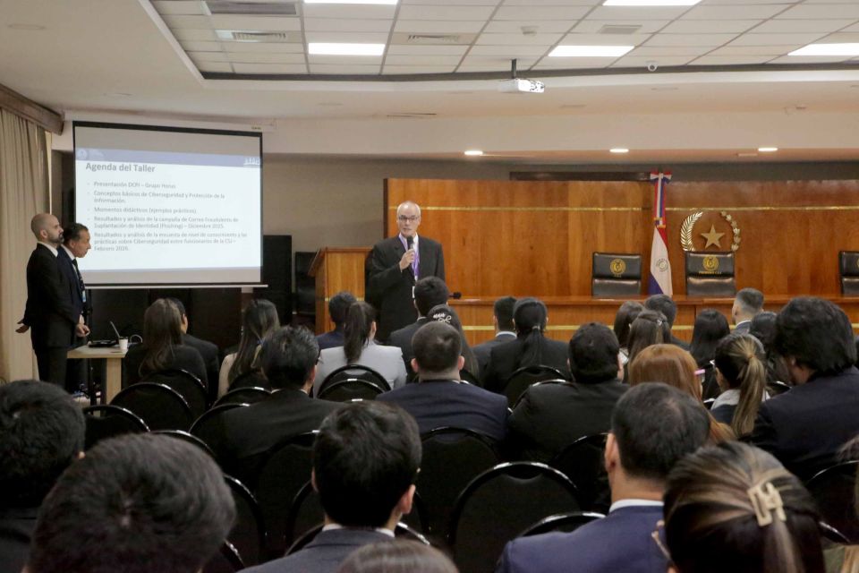 En el marco de la campaña integral de concienciación en ciberseguridad, este martes 28 de abril se desarrolló la tercera jornada del taller, con presencia del presidente de la Corte Suprema de Justicia, doctor Alberto Martínez Simón, dirigida a ministros e integrantes de sus gabinetes. La capacitación estuvo organizada por la Dirección de Ciberseguridad y Protección de la Información (DCPI), dependiente de la Dirección General de Tecnología de la Información y Comunicaciones (DGTIC), con el objetivo de fortalecer las capacidades de los equipos en materia de prevención de riesgos y buenas prácticas, así como promover la protección de la información institucional frente a amenazas como el phishing y las brechas de datos.