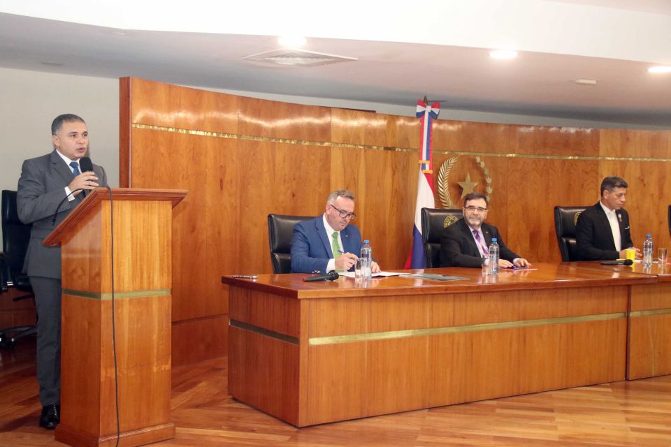 En este contexto, acompañaron al ministro Ríos, el abogado Gerardo Morales, titular de la Dirección de Derecho Ambiental; el doctor Roque Orrego, presidente del Instituto de Estudios Comparados en Ciencias Penales y Sociales (INECIP) Paraguay; y el evento fue moderado por el doctor Juan Martens, director de INECIP y del diplomado.