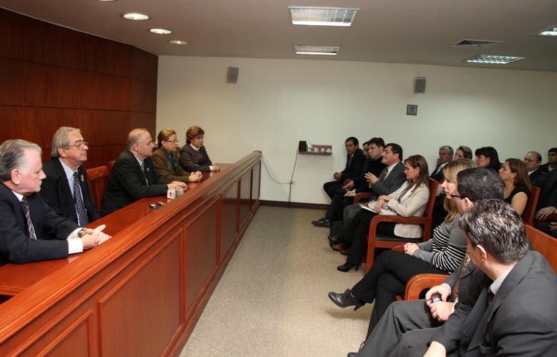 El presidente de la Corte Suprema de Justicia Luis María Benítez Riera y los ministros Víctor Núñez, Alicia Pucheta de Correa, Gladys Bareiro de Módica y Raúl Torres Kirmser, recibieron en audiencia a representantes de la Asociación de Fiscales del Paraguay. Las autoridades judiciales escucharon las inquietudes de los visitantes con relación a la legislación que regula el enjuiciamiento y remoción de agentes del Ministerio Público.