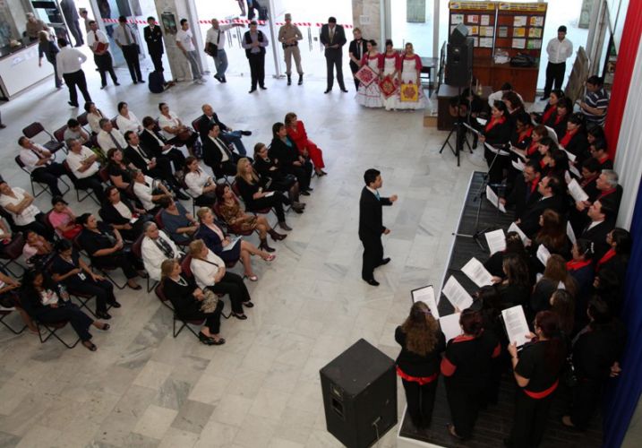 El mencionado coro se encargó de interpretar las canciones “Un millón de Amigos”, “Felicidades mi Gran Amigo”, “Bravo Paraguay”, “Lazos de Amistad” y “Cielo de Ñandutíes” y estuvo acompañado del ballet “Santa Rosa” que es dirigido por la profesora Rossi Riveros.