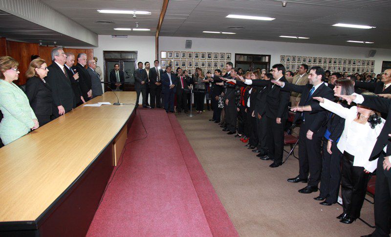 En un acto público y en presencia de autoridades judiciales, se llevó a cabo esta mañana, el juramento de 27 jueces. Los mismos fueron designados por la Corte Suprema de Justicia durante su última sesión plenaria. El ministro de la máxima instancia Judicial, doctor Sindulfo Blanco instó a los nuevos integrantes de la Justicia a trabajar con honestidad, transparencia y a cuidar la imagen del Poder Judicial.