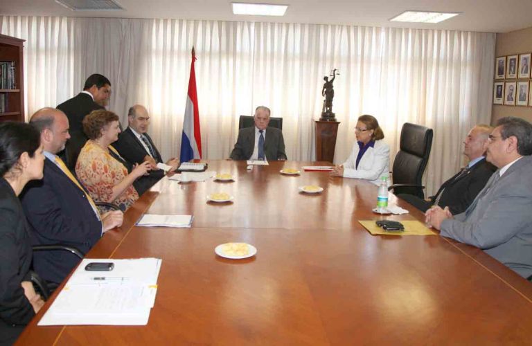 Posteriormente, fueron recibidos por el titular de la máxima instancia judicial, Víctor Núñez y los ministros Alicia Pucheta de Correa, Luis María Benítez Riera y Antonio Fretes, quienes dieron un resumen de los avances logrados en el Programa Umbral, Fase II.