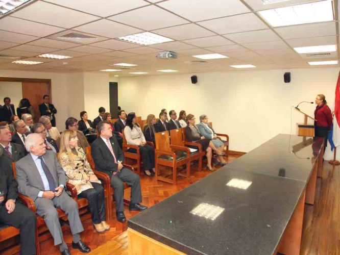 Por su parte, la presidenta interina, doctora Alicia Pucheta de Correa destacó el emprendimiento de la ministra Gladys Bareiro de Módica y resaltó también, la experiencia de la misma en la materia, tanto a nivel nacional como internacional y aprovechó la ocasión, para felicitar a los miembros del Tribunal de Cuentas por la disminución de la morosidad judicial, en el marco del Programa Umbral.