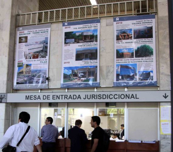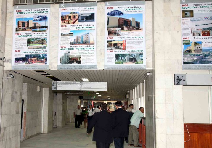 Los banners están colocados en la planta baja de la sede judicial de Asunción y en los mismos también se mencionan datos de la torre norte del Palacio de Justicia de Asunción construida en 1.997 y otros edificios judiciales como el destinado para los Registros Públicos, así como las ampliaciones de otras sedes.