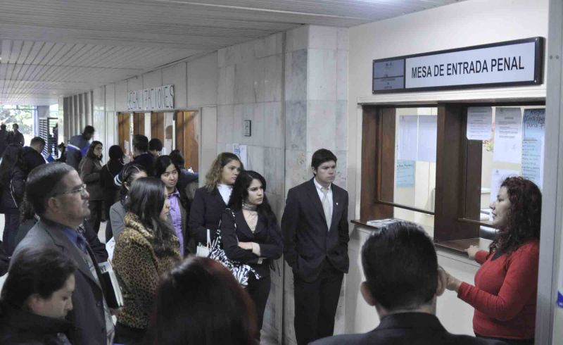 Posteriormente se dirigieron a la Mesa de Entrada Penal en donde una funcionaria explicó las funciones de la dependencia que es la de recepcionar expedientes fiscales y querellas públicas o autónomas. Asimismo explicó el sorteo de expedientes que se realiza de manera aleatoria y a través de un sistema informático.