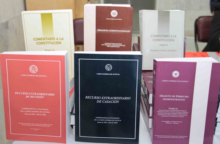 Están expuestos más de 20 libros sobre el Código de la Niñez y Adolescencia, fallos institucionales, compilación de Acordadas de la Corte Suprema de Justicia, Jurisprudencias, comentarios a la Constitución entre otros. Los mismos se encuentran a la venta a precio de costo.