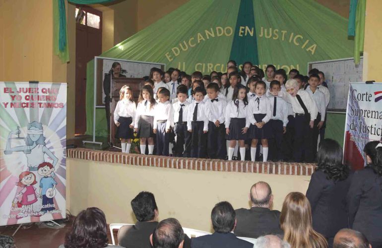 La actividad se inició con el momento artístico a cargo de estudiantes, niños y jóvenes de Villarrica, quienes interpretaron una selección de músicas folklóricas a los presentes. La directora de la escuela “Ramón Indalecio Cardozo”, Carina Almada, destacó la visita del doctor Luis María Benítez Riera, ministro de la Corte Suprema y de las autoridades judiciales, resaltando la importancia de la campaña “Educando en Justicia” que permite una relación más directa entre los alumnos y altos magistrados.