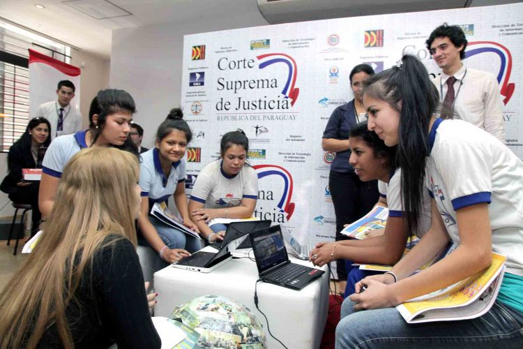 El Máximo Tribunal en uno de sus stands dispuso de notebooks con cuestionarios y formularios online para que los presentes pudiesen opinar sobre todo lo realizado durante la feria. Una de las preguntas era si podían diferenciar las funciones de la Corte Suprema, Ministerio Público y Policía Nacional, así también si poseían previo conocimiento sobre algunas de las dependencias judiciales, sugerencias y correos electrónicos para los que quieran recibir información.
