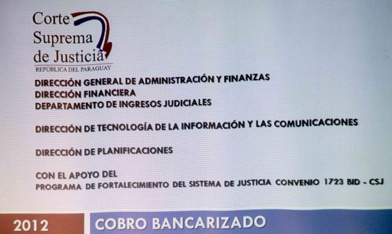 Con el objetivo de mejorar el sistema de pagos de tasas judiciales, apuntar a la transparencia, la eficiencia de la gestión administrativa y reducir los costos operativos, fue presentado este jueves en el Salón de Conferencias del Palacio de Justicia de Asunción, el nuevo “Sistema de Liquidación de Tasas Judiciales por Internet y Cobro Bancarizado”, que entrará en vigencia a partir del 16 de octubre.