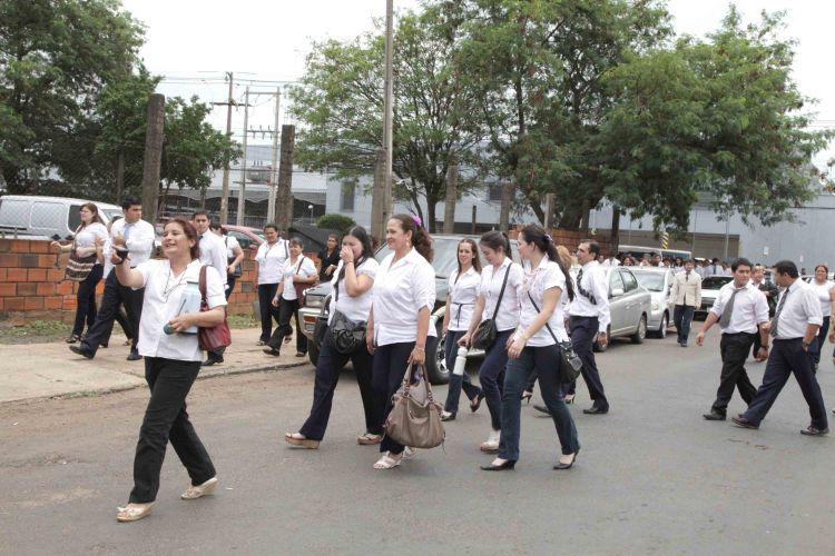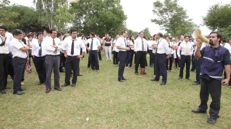 Los funcionarios en caso de siniestro poseen un punto de encuentro en la Plaza Vy’arenda ubicada a una cuadra del edificio, en ella son distribuidos por piso, para luego pasar una lista y verificar si todos pudieron salir del local.