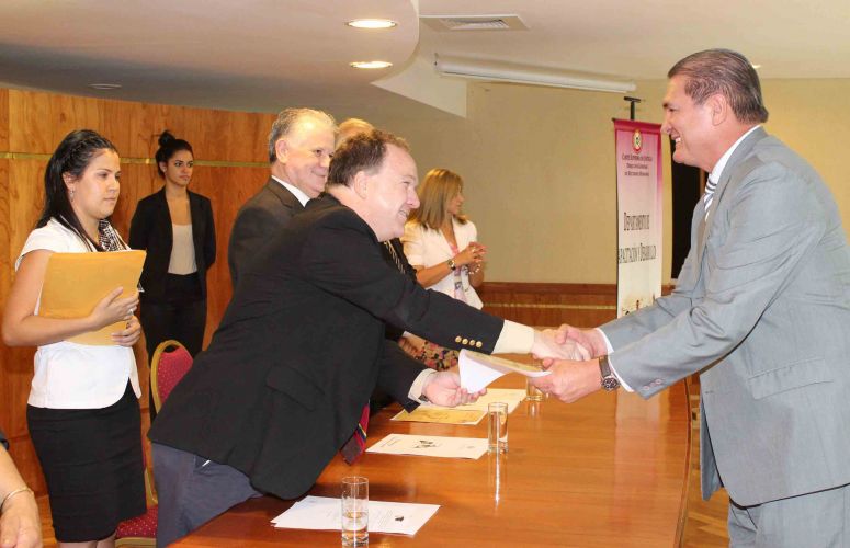 Finalmente se hizo entrega de los reconocimientos a los instructores y de los certificados a los participantes de los cursos, que fueron los actuarios del fuero Penal, actuarios y funcionarios de la jurisdicción de la Niñez y la Adolescencia, funcionarios del Departamento de Patrimonio de la Dirección General de Administración y Finanzas. Además fueron premiadas las personas más distinguidas de cada programa de capacitación.