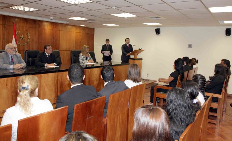 Con base en un convenio interinstitucional entre la Corte Suprema de Justicia y la Universidad de la Integración de las Américas (UNIDA), firmado en setiembre de 2012, esta mañana se dio la apertura de pasantía de los alumnos del octavo, noveno y décimo curso de esa casa de estudios en el Poder Judicial. El acto de apertura se realizó en el noveno piso de la Torre Norte del Palacio de Justicia de Asunción.