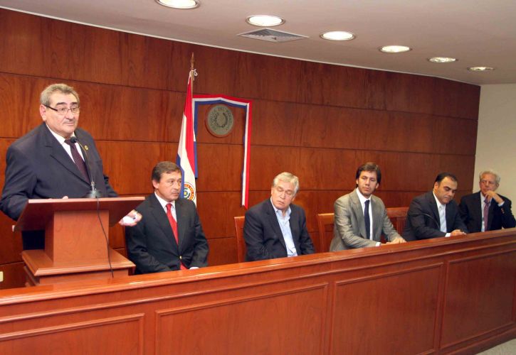 El titular de la Corte Suprema de Justicia, doctor Antonio Fretes, se reunió esta mañana con el Fiscal General del Estado, el ministro del Interior y representantes de la Cámara de Anunciantes del Paraguay (CAP) y del Centro de Regulación, Normas y de Estudios de la Comunicación (CERNECO), a quienes propuso realizar un pacto ético-social entre todos los sectores con el objetivo de reparar los daños al medio ambiente. El encuentro se realizó de modo a proseguir con los trabajos de prevención ambiental y de establecimiento de procedimientos para restablecer los daños, que son encarados por la máxima instancia judicial con el apoyo de diversos organismos e instituciones.