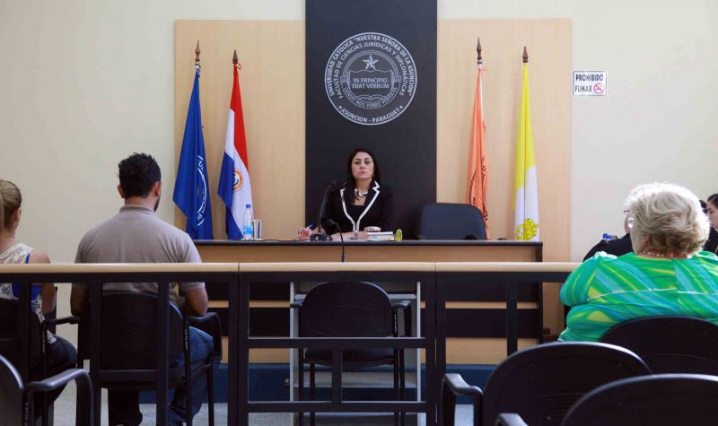 En el marco de un acuerdo firmado entre la Corte Suprema de Justicia y la Universidad Católica “Nuestra Señora de la Asunción” se llevó a cabo el desarrollo de un juicio oral unipersonal, a cargo de la jueza María Luz Martínez, en la citada casa de estudios.