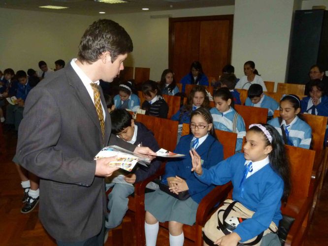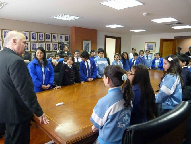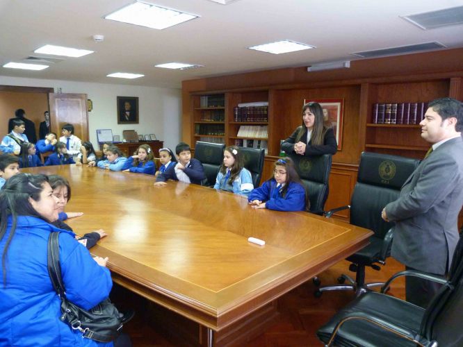 Los estudiantes, además de visitar las diferentes dependencias del edificio judicial, mantuvieron un encuentro en la Sala de Plenaria del Máximo Tribunal con el ministro responsable del programa, Profesor Doctor Luis María Benítez. El Alto Magistrado explicó a los alumnos que la Sala es lugar de deliberación de la Corte Suprema sobre la política judicial de la República.