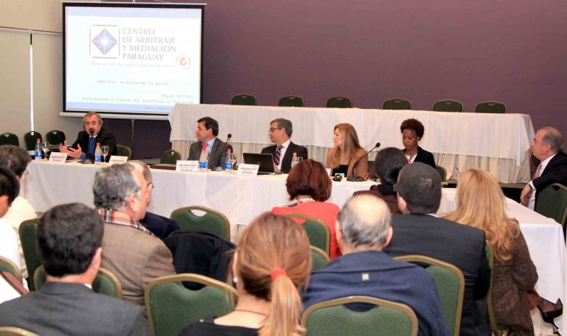 “Medios alternativos de resolución de disputas: mediación, conciliación y arbitraje” se denominó el panel que estuvo integrado por profesionales del derecho de nuestro país, de Argentina, Colombia, Bahamas y Estados Unidos. Por parte de Paraguay expuso el coordinador general del Centro de Mediación y Arbitraje, doctor Edgar Riffler, quien realizó una breve explicación sobre la Ley N° 1879/02.