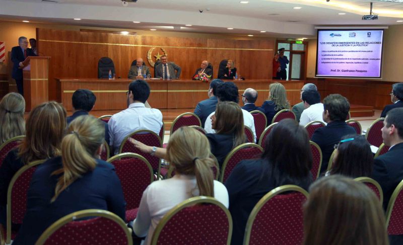 Aprovechando la visita a nuestro país del politólogo internacional, Gianfranco Pasquino, la Corte Suprema de Justicia, organizó una conferencia magistral con el experto italiano, quien habló sobre los desafíos emergentes en las relaciones de la justicia y la política. La actividad se realizó en el salón auditorio del Palacio de Justicia.