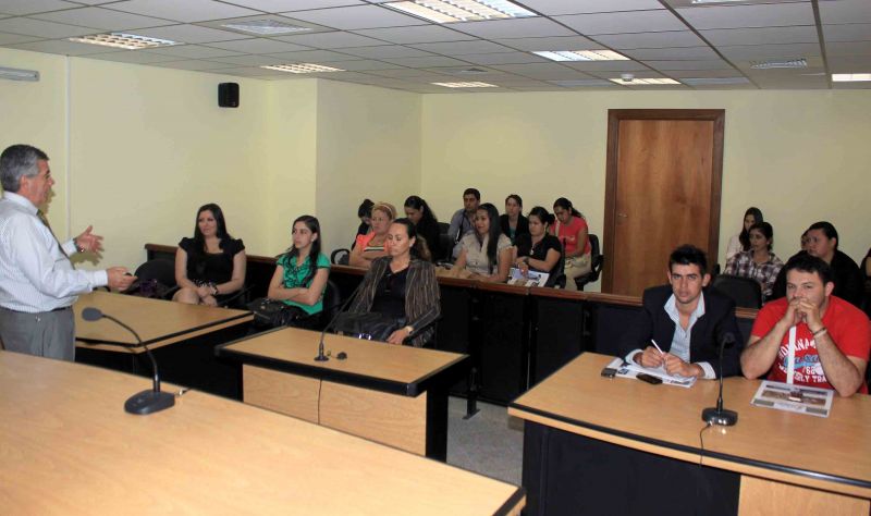Posteriormente, los estudiantes visitaron una de las salas de juicios orales en compañía del defensor público Carlos Flores, quien abordó temas referentes al proceso y los pasos que se deben tomar en un juicio oral y público.