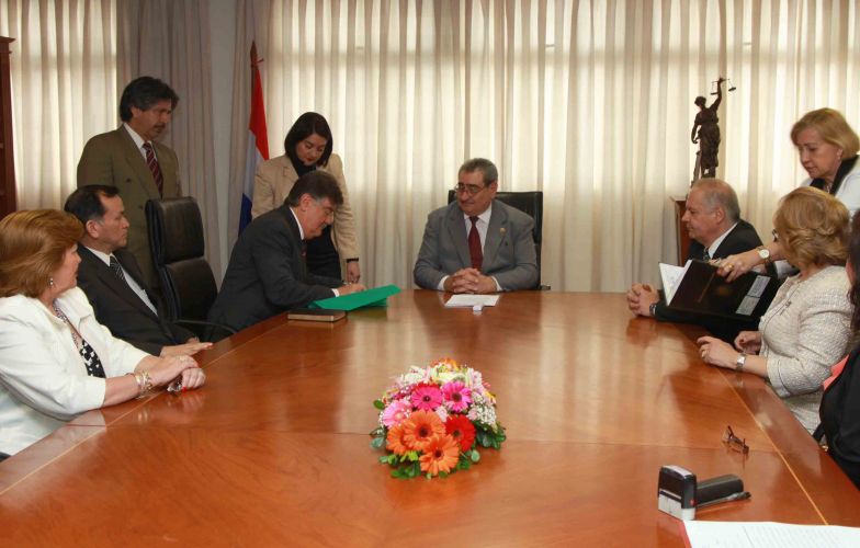 Finalmente, se procedió a la firma del documento que fue suscripto por la máxima autoridad judicial y el titular de la Asociación Paraguaya de Adventistas y refrendado por los ministros de la Corte Suprema de Justicia doctores Gladys Bareiro de Módica y Luis María Benítez Riera, ante la escribana Olga Molas.