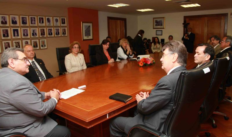 La sala del pleno de la Corte Suprema de Justicia fue sede de la firma del acuerdo por el cual la Asociación Paraguaya de los Adventistas del Séptimo Día donó, a la máxima instancia judicial, un inmueble ubicado en el kilómetro 8 de Monday, distrito de Ciudad del Este, Alto Paraná.