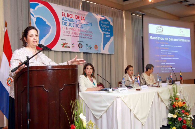 La camarista María Mercedes Buorgermini disertó esta mañana sobre la conceptualización del ciclo de violencia y sus repercusiones en las mujeres. Fue esta mañana durante el ciclo del III Seminario Internacional “El rol de la Administración de Justicia”, que se desarrolla en el Hotel Excelsior de Asunción, en el Marco Internacional de los Derechos Humanos.